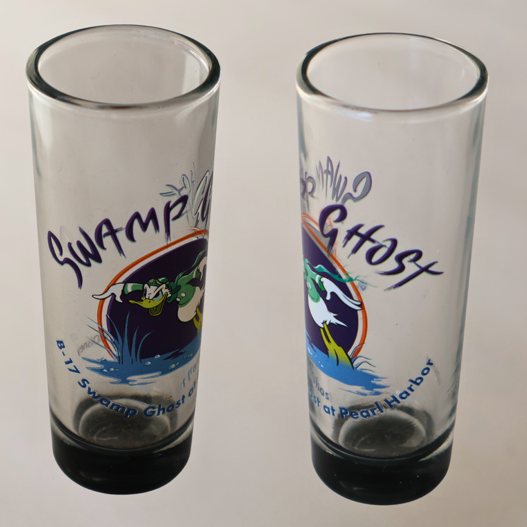 A new Swamp Ghost item for the selection! This tall 2 oz. shot glass features our iconic Donald Duck “Swamp Ghost” logo. The bottom is shaded in grey making the logo stand out slightly in natural light. Measures roughly 4 inches tall by 1.5 inches wide.